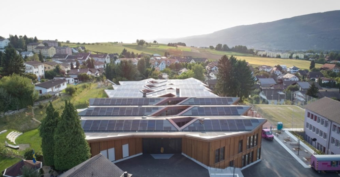 Đây là một ngôi trường hay nhà máy điện là câu hỏi rất nhiều người đặt ra khi nhìn vào thiết kế của tòa nhà ở Port, Thụy Sĩ. Ngôi trường năng lượng mặt trời này cung cấp đủ năng lượng cho khoảng 50 ngôi nhà ở khu vực xung quanh.