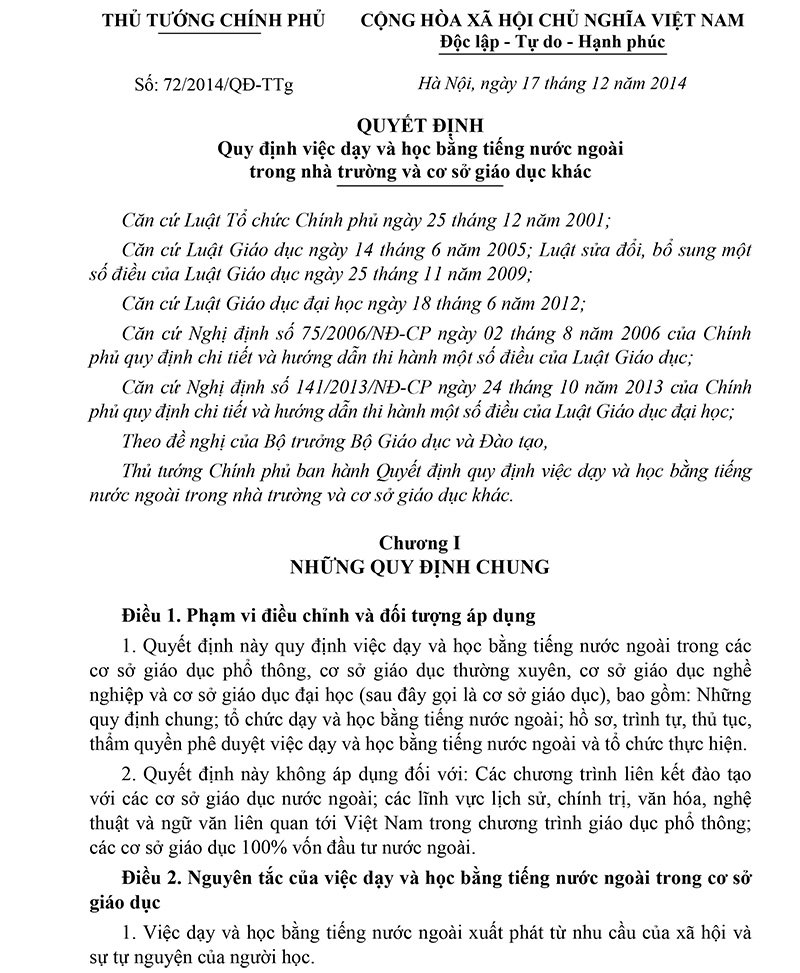 Quyết định 72/2014/QĐ-TTg