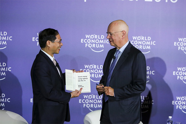 Tác giả cuốn sách "Cách mạng Công nghiệp lần thứ tư: Tất cả cùng có lợi" vừa được xuất bản bằng tiếng Việt cũng nhấn mạnh hai thập niên qua, WEF và Việt Nam đã có mối quan hệ tốt đẹp, mở ra tiềm năng tuyệt vời để phát triển. Ông Schwab cũng khẳng định không thể coi nhẹ tác động của CMCN 4.0. Nó có thể ảnh hưởng tới không chỉ môi trường kinh doanh mà còn cả chính sách kinh tế của một quốc gia hay một khu vực